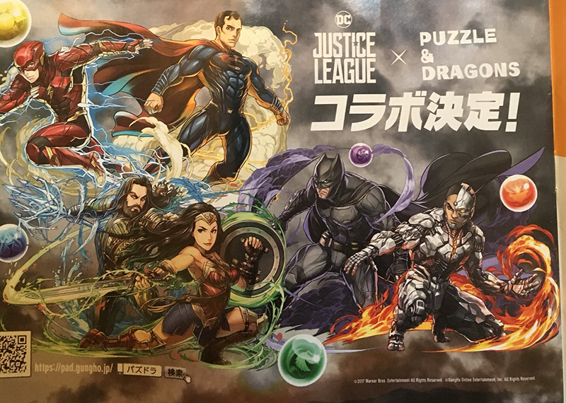 昨日、シネコンで配ってたシネコンウォーカーでもパズドラとジャスティスリーグとのコラボ広告出てた。— シルバ (@silva_pad_2015) November 5, 2017